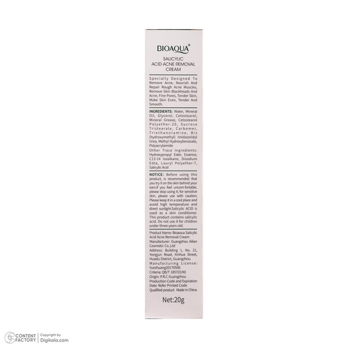 کرم ضد جوش صورت بی آکوا مدل Salicylic Acid مناسب برای انواع پوست وزن 20 گرم